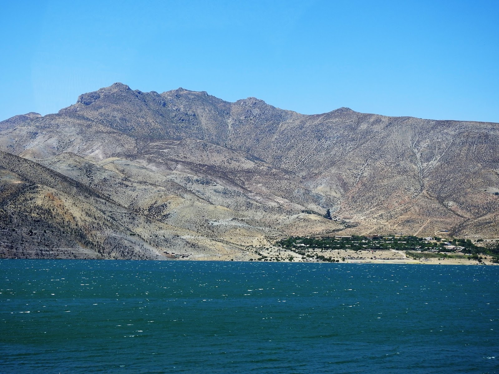 | A large reservoir is in the valley, and it provides water for irrigation of the fields. It's also used for windsurfing. |